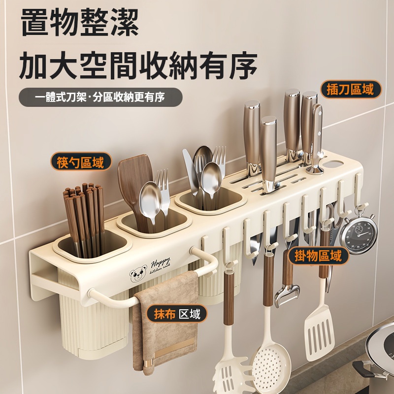 廚房多功能刀架置物架✅增加廚房空間 | 分區收納一架到位✅加寬設計 | 拿取便攜✅快速分類整理 | 多種槽孔設計