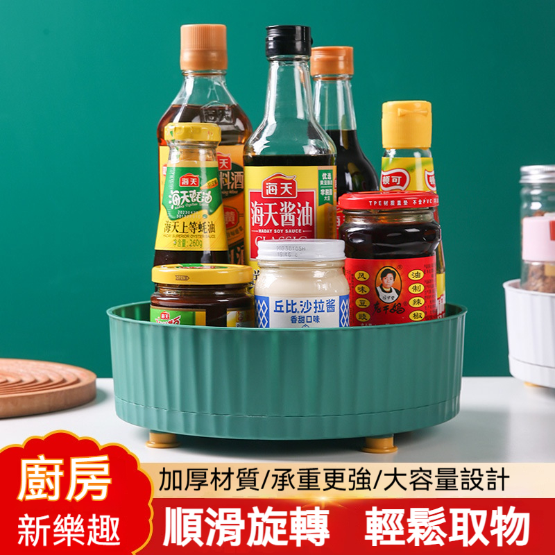 旋轉調料置物架✅三色莫蘭迪系 | 墨綠復古/橙活潑/象牙白簡約✅ 360度滑順旋轉 | 重物轉動沒卡頓✅加厚材質 | 承重更強 | 大容量設計