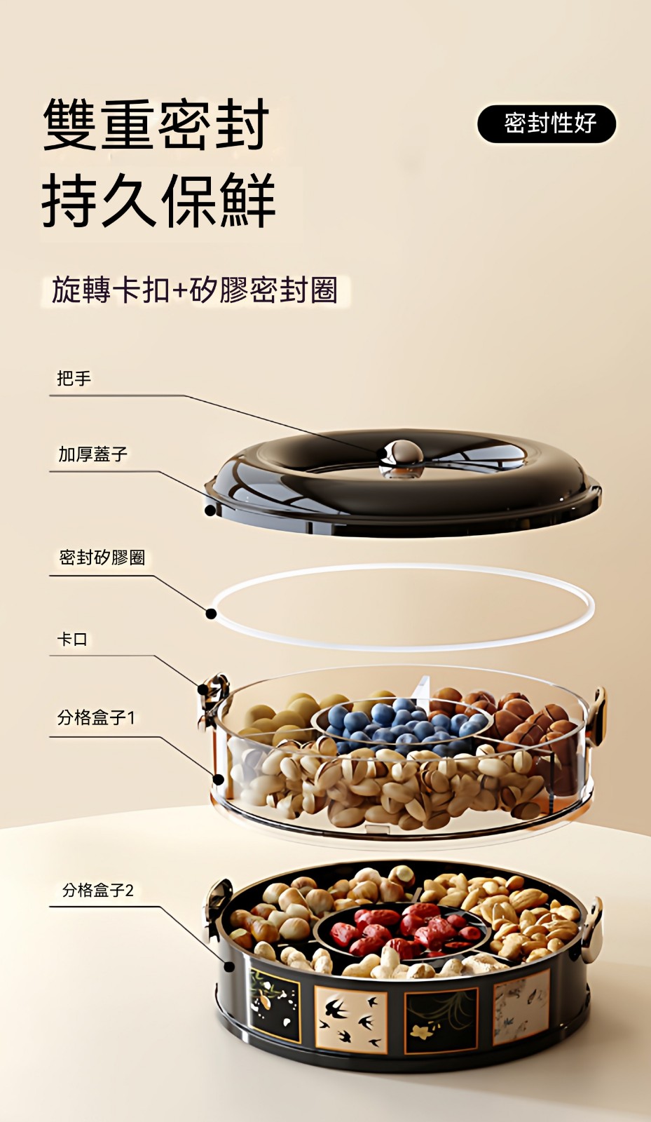 密封旋轉乾果盤✅分格收納 | 守護美食不串味✅雙重密封 | 持久保鮮✅多層可疊加設計 | 裝的多不佔空間✅優選食品級材質 | 收納安心無異味