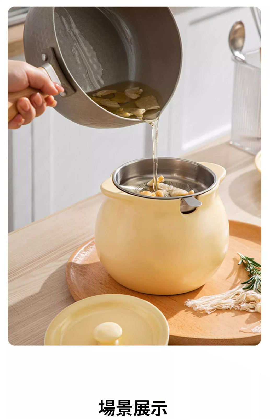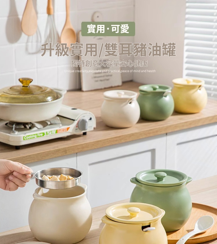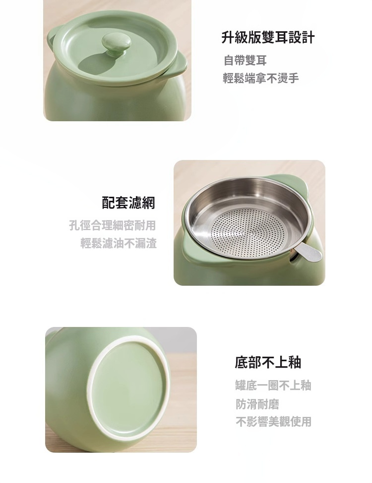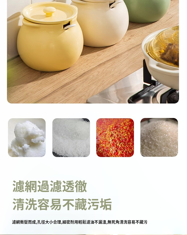 陶瓷豬油罐✅全新升級搭配304濾網 | 濾油濾渣輕輕鬆松✅濾網自備手把設計 | 輕鬆拿放不髒手✅一罐多用 | 居家實用性拉滿