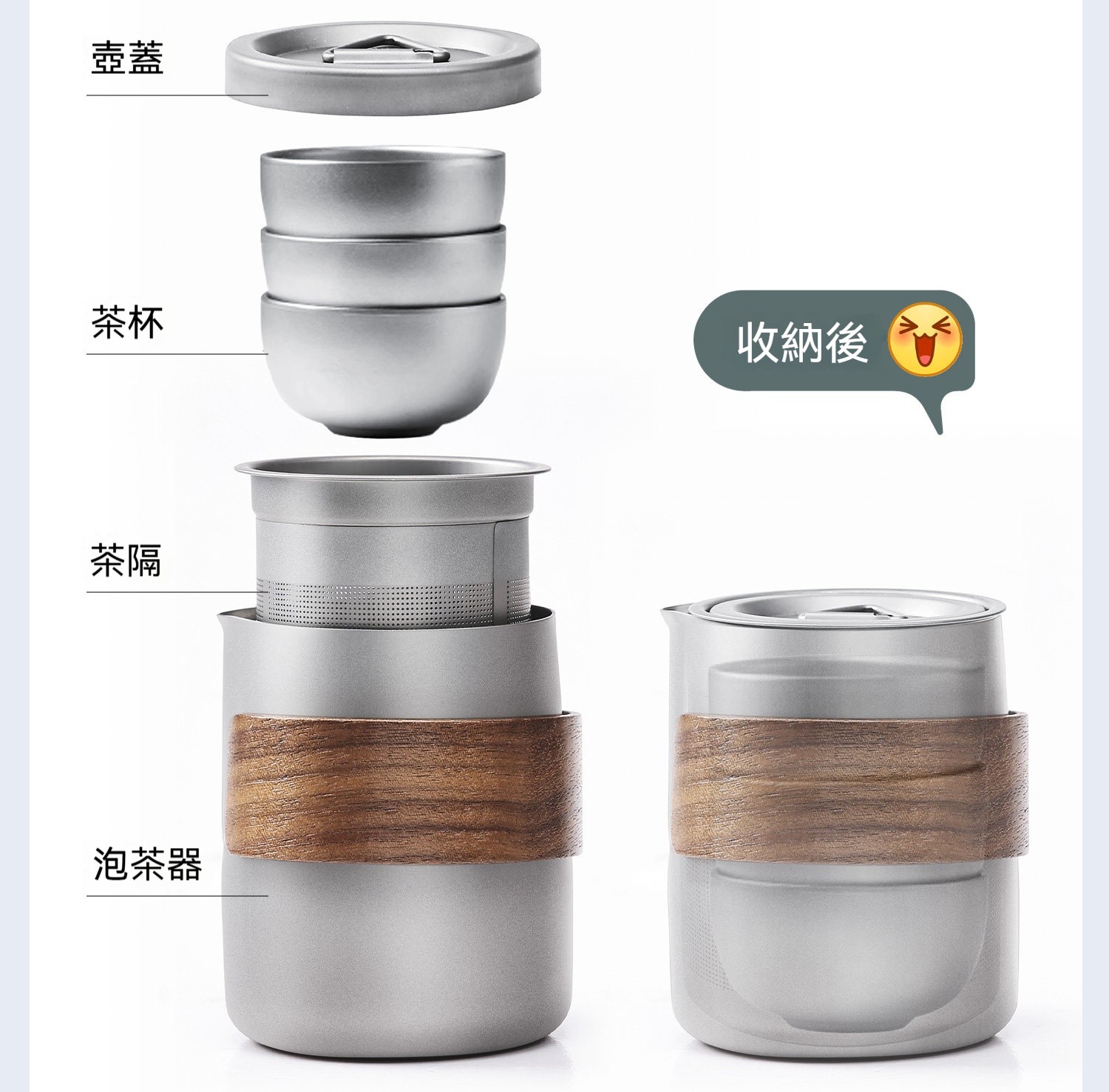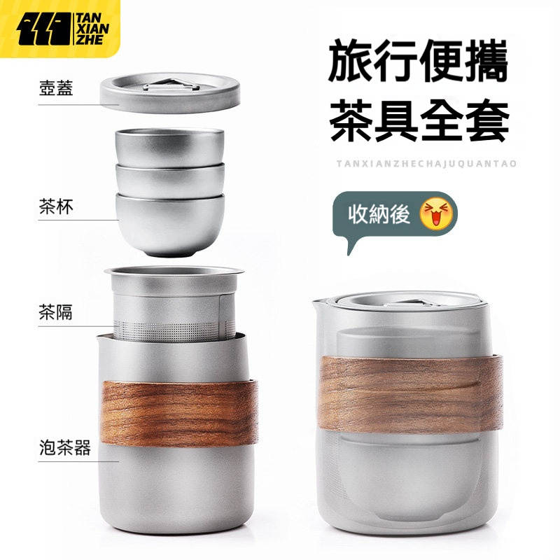 露營茶具套餐✅茶具一體 | 全套收納✅V型出水口 | 倒水利落斷水乾脆✅加厚胡桃木 | 隔熱防燙夾