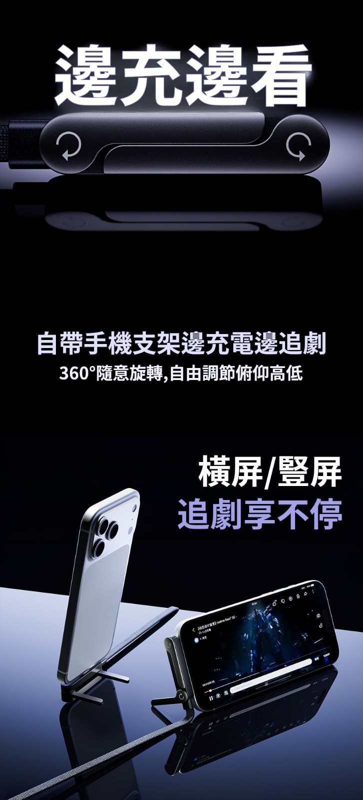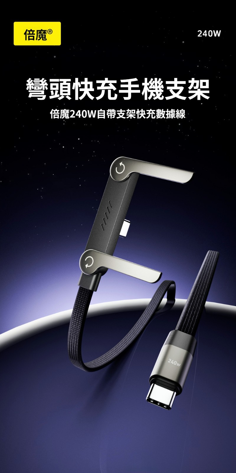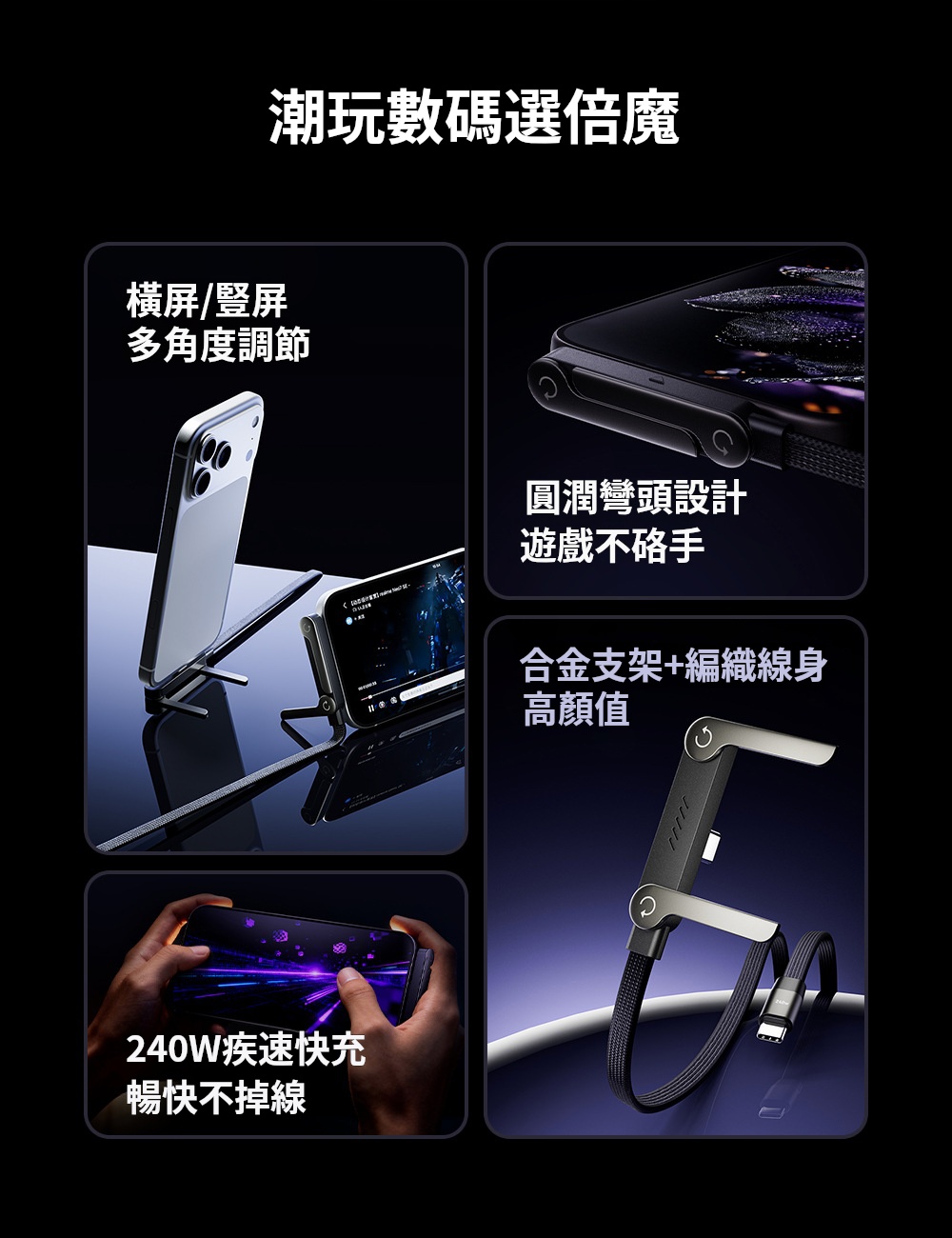 240w超級快充多功能手機支架✅折疊手機支架 | 彎頭快充數據線✅90°彎頭設計 | 圓潤舒適手感✅合金支架 | 編織線身高顏值